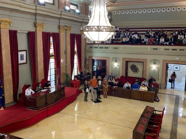 El Salón de Plenos del Ayuntamiento ha sido hoy escenario de una sesión del Parlamento Europeo llevada a cabo por los alumnos del IES Licenciado Francisco Cascales de Murcia.
