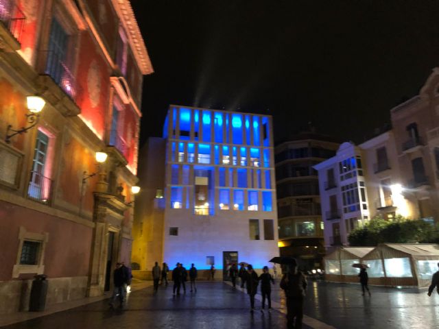 Varios monumentos y espacios de la ciudad de Murcia se iluminan de azul con motivo del Día Universal de la Infancia que se conmemora hoy, 20 de noviembre.