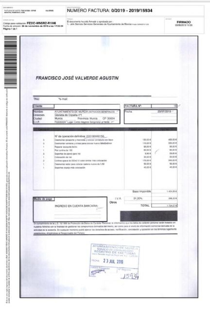 Bajo el nombre falso de Antonio Ros, J.C. ha manipulado nuevamente hoy una factura, en este caso sobre un gasto de Servicios Generales en el Centro de Mayores de Sangonera La Verde, y lo ha trasladado a los medios de comunicación y a los vecinos de la pedanía.