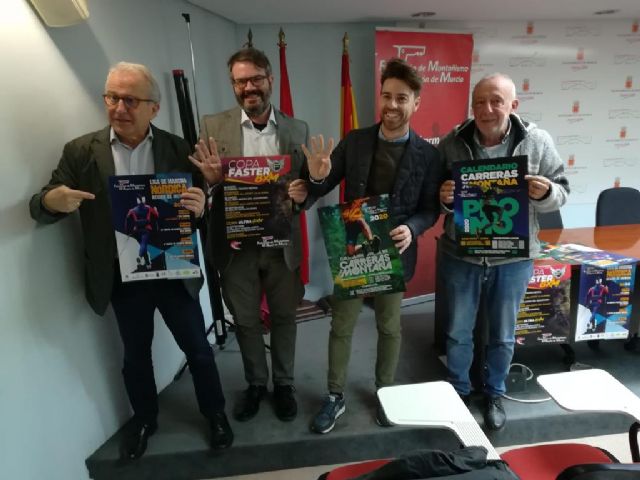 El concejal de Deportes y Salud, Felipe Coello, junto al presidente de la Federación de Montañismo de la Región de Murcia, Luis Ríos, y el director general de Deportes, Fran Sánchez, ha presentado esta mañana el calendario de las ligas de la Federación de Montañismo para 2020.