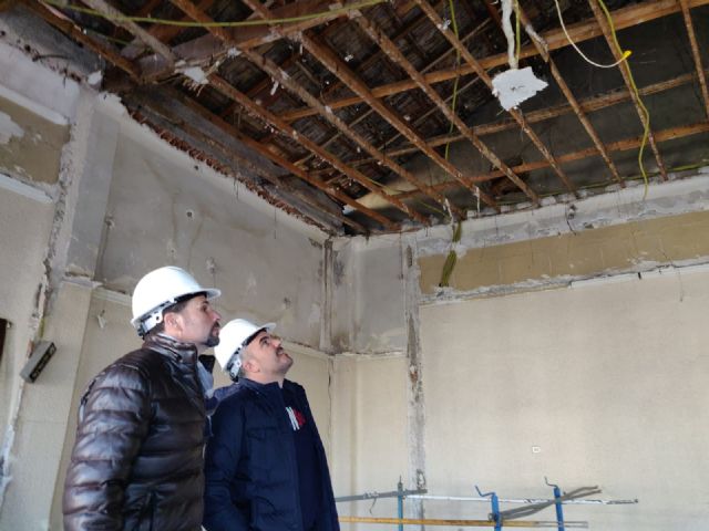 Las obras de remodelación del antiguo Casino de Los Garres marchan a buen ritmo, a pesar de los vicios ocultos que la empresa encargada de su remodelación ha encontrado bajo el falso techo y el suelo, donde han aparecido unas viejas colañas de madera.