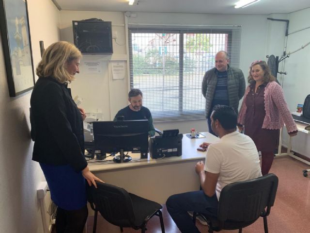 La concejala de Agenda Urbana y Gobierno Abierto, Mercedes Bernabé, ha visitado esta mañana las oficinas de Atención Ciudadana de Sangonera la Seca y Sangonera la Verde, localidades en las que se atiende a una población de 16.921 personas, que gestionaron un total de 5.121 trámites el pasado año entre las dos.