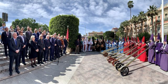“Este acto representa la llamada oficial de la Semana Santa murciana, anunciando que esta tradición de más de 600 años de historia va a comenzar”, destacó el alcalde de Murcia, quien recibió a los nazarenos en la Glorieta de España, donde realizaron varios toques de burla, y añadió que “somos fruto de un largo pasado de nazarenos, quienes portaron nuestras burlas de Semana Santa e hicieron sonar esos tambores que cualquier murciano reconoce”.