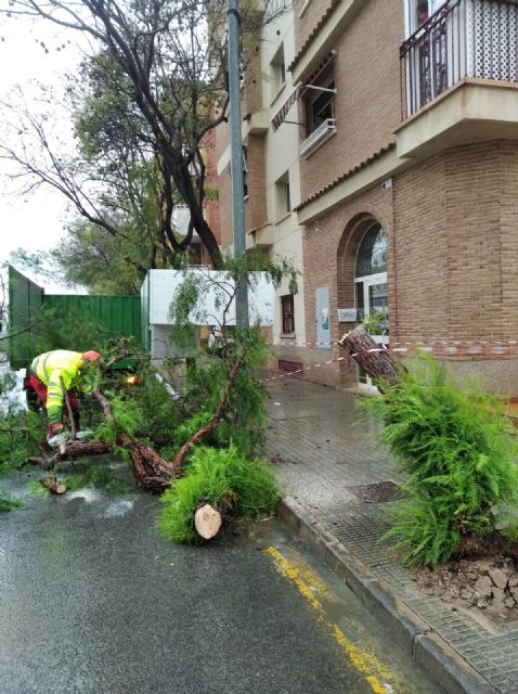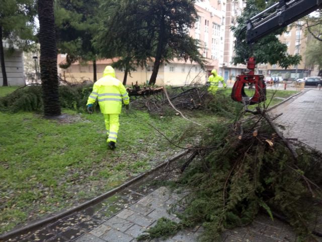 El Ayuntamiento, a través de la Concejalía de Desarrollo Urbano y Modernización de la Administración, que dirige José Guillén, trabaja en la retirada de diverso arbolado que ha cedido debido a las lluvias registradas desde el día de ayer.