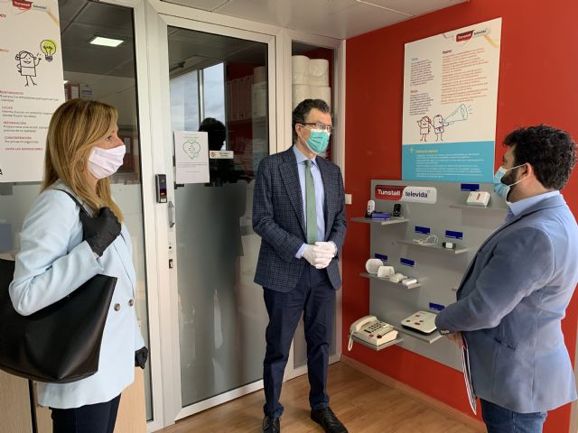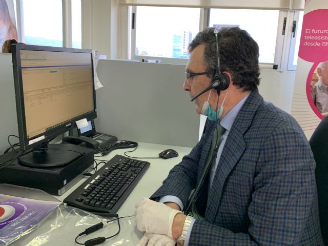 El alcalde de Murcia, José Ballesta, junto a la concejal de Derechos Sociales y Familia, Pilar Torres, supervisó esta mañana el funcionamiento del servicio de Teleasistencia del Ayuntamiento de Murcia, que actualmente atiende a 3.089 personas y garantiza la atención inmediata ante cualquier emergencia y demanda social durante el periodo de confinamiento.