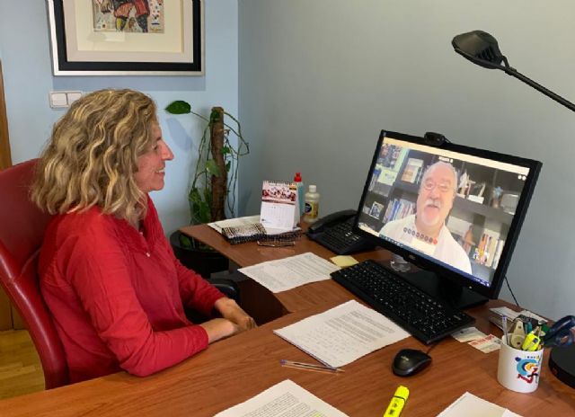 La concejala de Agenda Urbana y Gobierno Abierto, Mercedes Bernabé, ha mantenido hoy una reunión por videoconferencia con el presidente de la Asociación de Creadores y Artistas ‘Palin’, Asensio Piqueras, para acordar la modificación de las bases de participación para la III Feria del Libro, que se celebrará, previsiblemente, del 7 al 12 de octubre en la avenida Alfonso X de Murcia.