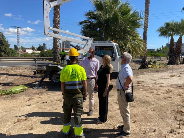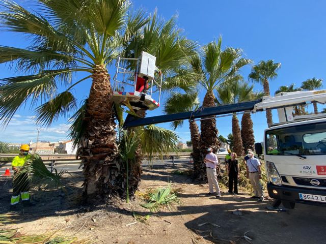 En el municipio de Murcia existen más de 15.000 palmeras, entre ellas se encuentran más de 450 ejemplares adscritos a Demarcación de Carreteras, y que son tratados desde la Concejalía de Desarrollo Urbano y Modernización de la Administración, que está realizando estas actuaciones en virtud de los acuerdos existentes entre ambas administraciones, desde el año 2016.