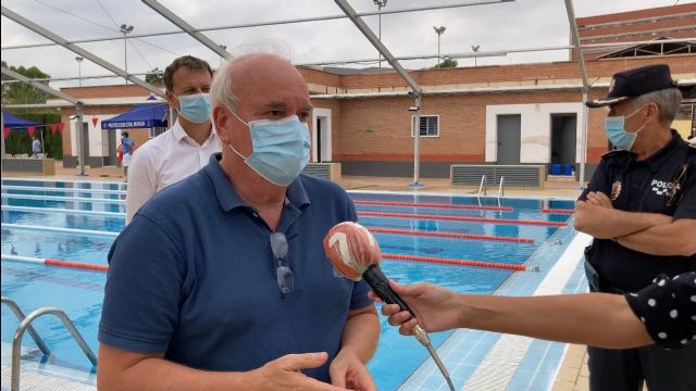 El concejal de Barrios y Pedanías, Marco Antonio Fernández y el concejal de Seguridad Ciudadana y Gestión Económica, Eduardo Martínez-Oliva, han visitado esta mañana la piscina municipal de El Palmar, donde se han reanudado las pruebas físicas del proceso selectivo de Policía Local.