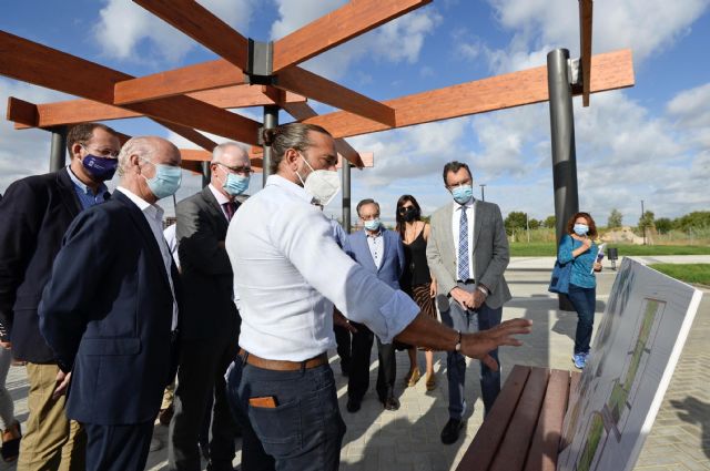 El alcalde de Murcia, José Ballesta, junto al concejal de Desarrollo Sostenible y Huerta, Antonio Navarro, y el edil de Desarrollo Urbano y Modernización de la Administración, José Guillén, visitó esta mañana los trabajos que se han llevado a cabo en este entorno, que cuenta con tres espacios diferenciados con elementos de juegos para todas las edades, entre los que destaca una tirolina de cerca de 20 metros de largo.