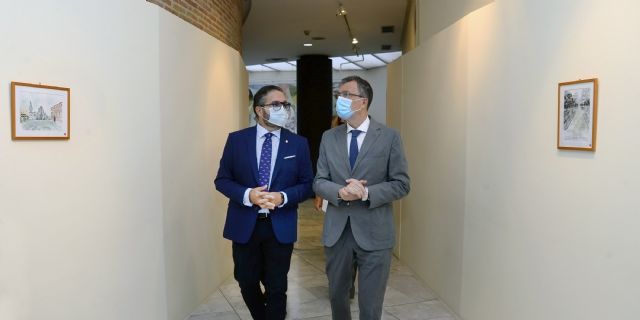 “Los artistas, a través de la palabra, de sus cámaras, de sus pinceles o de sus lápices, tienen la capacidad de expresar sentimientos. Lo dice muy bien César en la introducción que presentan estas láminas: el artista no solamente debe expresar lo que se ve, sino el sentimiento de lo que se ve. Creo que estas láminas de ‘Murcia Confinada’ son unas imágenes inquietantes, no sé si impactantes, de una Murcia desconocida”, destacó José Ballesta durante el acto, al que también ha asistido el concejal de Cultura y Recuperación del Patrimonio, Jesús Pacheco, y la concejal de Derechos Sociales y Familia, Pilar Torres.