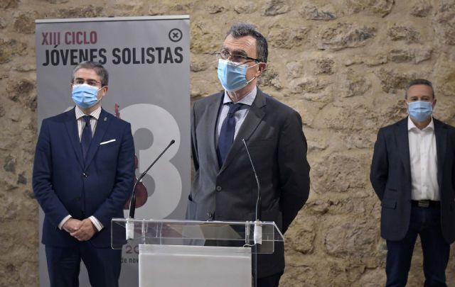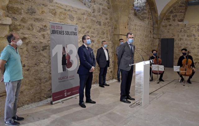 El alcalde de Murcia, José Ballesta, acompañado del concejal de Cultura y Recuperación del Patrimonio, Jesús Pacheco, presentó esta mañana en la Sala Caballerizas –junto al Museo Hidráulico de Los Molinos del Río– el XIII Ciclo de Jóvenes Solistas, que se desarrolla desde el día 9 de octubre hasta el 14 de noviembre en Murcia y cinco pedanías. En concreto, arranca este viernes en el Auditorio de Guadalupe, con un concierto de violonchelo y piano.