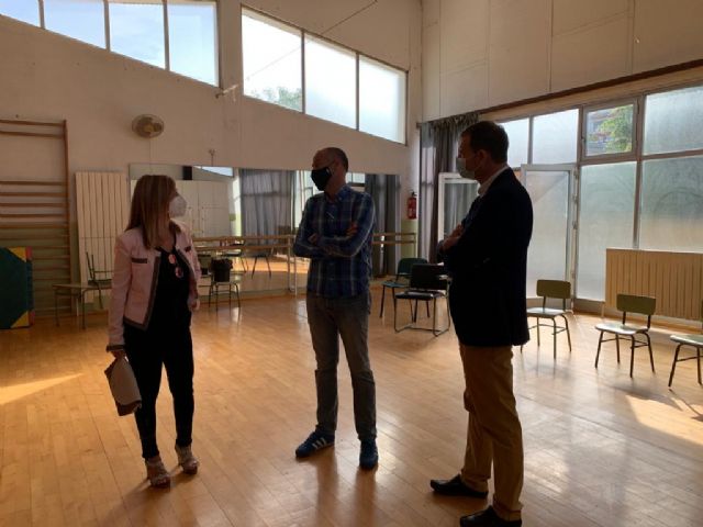 El concejal de Barrios y Pedanías, Marco Antonio Fernández, y la concejala de Educación y Escuelas del Ayuntamiento de Murcia, Belén López Cambronero, visitan el CEIP Barriomar 74, situado en el barrio murciano que lleva el mismo nombre, para supervisar las mejoras que se han llevado a cabo en los espacios de educación infantil y primaria.