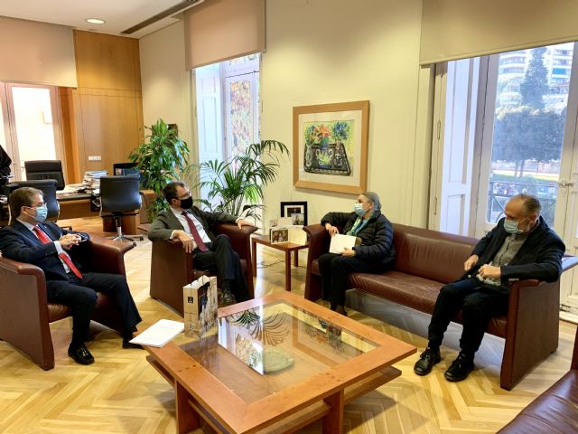 El alcalde de Murcia, José Ballesta, junto al concejal de Cultura y Recuperación del Patrimonio, Jesús Pacheco, recibió esta mañana en el Ayuntamiento a Isabel Verdejo, viuda de Ramón Gaya y vocal de la Fundación Museo Ramón Gaya, quien donará más de 2.000 objetos que pertenecían al pintor y escritor murciano, como su biblioteca personal –compuesta por casi 1.000 libros– y vinilos, entre otros recursos, con motivo del 30 Aniversario de la creación del Museo Ramón Gaya, que abrió sus puertas en 1990.