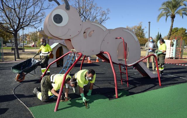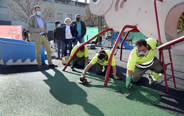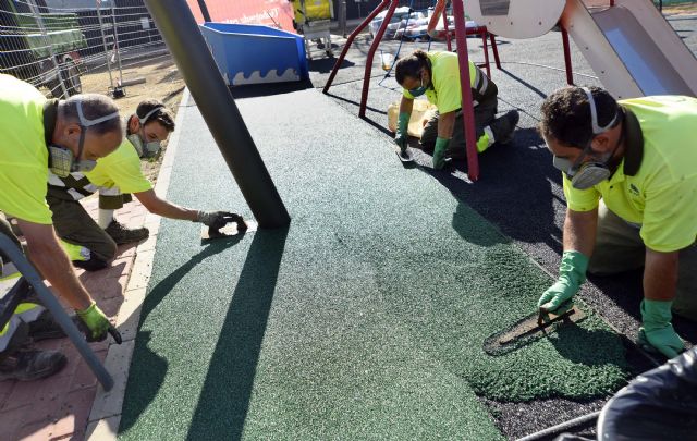 El Ayuntamiento de Murcia, a través de la concejalía de Desarrollo Urbano y Modernización de la Administración que dirige José Guillén, está llevando a cabo un plan para instalar y sustituir más de 60.000 metros cuadrados de caucho en zonas de juego infantiles.