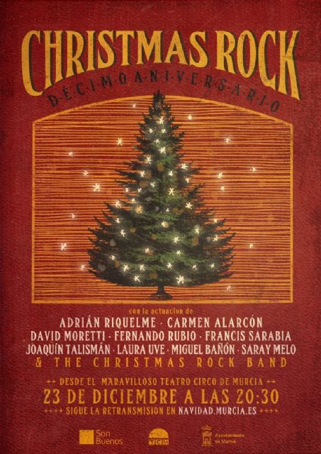 El décimo aniversario de Christmas Rock Murcia contará con nueve voces murcianas de nueve ediciones pasadas, que tratarán de rememorar actuaciones y momentos únicos. El concierto se realizará en el Teatro Circo de Murcia, el 23 de diciembre a las 20:30 horas, y se podrá ver en streaming desde la web navidad.murcia.es y las redes sociales del Ayuntamiento de Murcia.