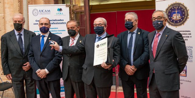 Alejandro Blanco y Vicente del Bosque le han entregado la distinción al presidente de la UCAM, concedida por la Asociación Nacional de Asesores de Inversión, Financiación y Peritos Judiciales