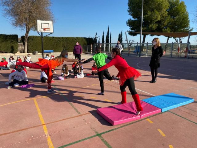 Durante su visita, la edil ha podido disfrutar de un ensayo de la fiesta de Navidad que los niños y niñas preparan para la próxima semana en el patio del colegio, con todas las medidas de seguridad frente al Covid-19.