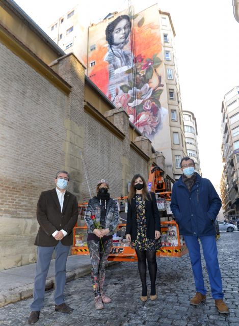 José Ballesta: "El arte urbano se alía con una de las tradiciones más características de Murcia, el oficio de las flores, para dar forma a un mural de 32 metros de altura, creado por la artista internacional Lula Goce"