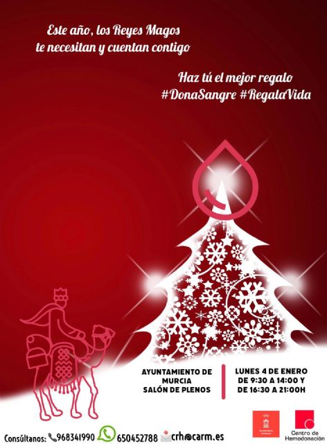 El Centro Regional de Hemodonación y el Ayuntamiento de Murcia lanzan una campaña de cara a la festividad de los Reyes Magos para concienciar a la población sobre la necesidad de donar sangre.