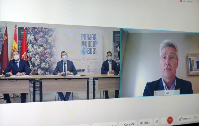 El alcalde de Murcia, José Ballesta, junto al concejal de Desarrollo Urbano y Modernización de la Administración, José Guillén, y el presidente de la Asociación Española de Parques y Jardines Públicos (AEPJP), Francisco Bergua, presentó esta mañana el programa del Congreso Nacional de Parques y Jardines Públicos (PARJAP 2021) en la Sala de Corregidores, que se celebrará en Murcia durante los días 25 y 26 de mayo. Por primera vez, se desarrollará de forma virtual –el evento ha sido adaptado con motivo de la crisis sanitaria–.