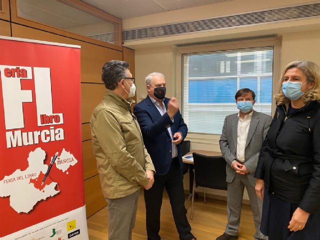 La concejala de Agenda Urbana y Gobierno Abierto, Mercedes Bernabé, y el presidente de la Asociación de Creadores y Artistas ‘Palin’, Asensio Piqueras, han presentado hoy las bases del concurso del cartel anunciador de la IV Feria del Libro de Murcia 2021, que se celebrará entre el 6 y el 12 de octubre en dos modalidades, una presencial, que estará sujeta en función de la pandemia, y otra virtual.
