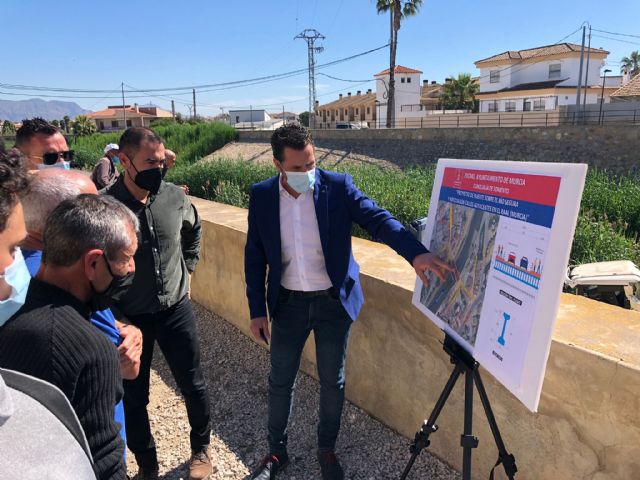 El vicealcalde Mario Gómez ha visitado esta mañana la pedanía de El Raal donde se han realizado las labores de retirada de la hormigonera que cayó al río Segura