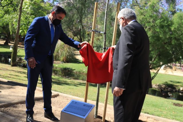 Desde esta mañana un álamo blanco en el Jardín de la Seda recuerda a los murcianos fallecidos durante la pandemia.