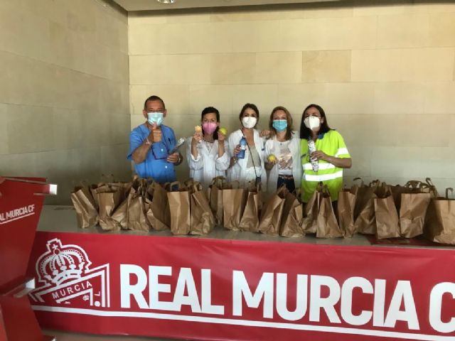 La concejala de Sanidad y Modernización de la Administración, Esther Nevado, ha agradecido su trabajo a los enfermeros municipales y a distintas entidades como al Real Murcia, Cruz Roja con el soporte de su voluntariado, la donación de Hero Alimentación, y agua Fuente Liviana de Estrella de Levante y la Concejalía de Empleo, Comercio y Mercado que, a través de sus cursos de hostelería, está aportando el almuerzo para los vacunadores.