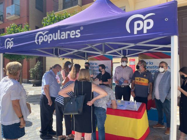 La portavoz del Grupo Municipal Popular, Rebeca Pérez, y los concejales José Guillén, Felipe Coello y Mercedes Bernabé han participado en la campaña de recogida de firmas contra los indultos de Pedro Sánchez a los condenados por sedición bajo el lema 'Por la Constitución, la Justicia y por España'.