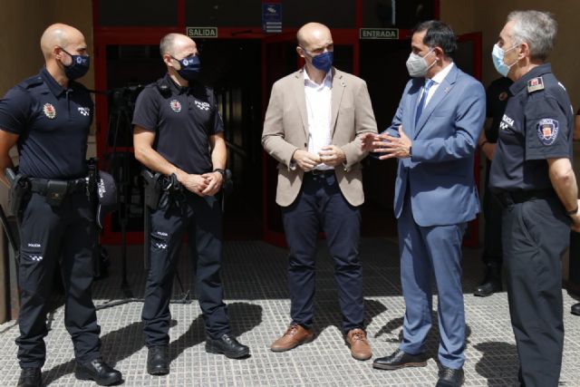 Durante la visita el Alcalde ha felicitado a los agentes Franco y Arce que el pasado martes salvaron la vida a un vecino de Monteagudo que se había desvanecido mientras jugaba al fútbol en el barrio de La Paz.