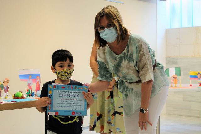 La consejera de Mujer, Igualdad, LGTBI, Familias y Política Social de la CARM, Isabel Franco; el presidente de la Junta de Distrito Centro-Oeste del Ayto. de Murcia, Diego Avilés; y la presidenta del Patronato de Fundación FADE, Macarena Perona, han participado en la clausura del Campamento Urbano organizado por la Fundación FADE en el barrio de San Andrés-San Antolín en horario de tardes durante este mes de julio.