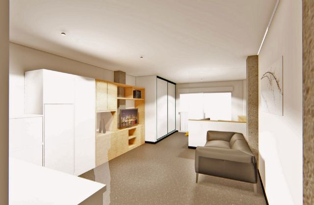 Por su parte, la planta tipo de las viviendas contiene una estancia única que hace las veces de dormitorio y que está separado visualmente por un vidrio translúcido, y el salón-comedor-cocina. Entre el acceso y la estancia única se sitúa el baño que también es totalmente accesible. Se van a construir con materiales que otorgan un ambiente cálido y acogedor para dar la bienvenida al hogar.