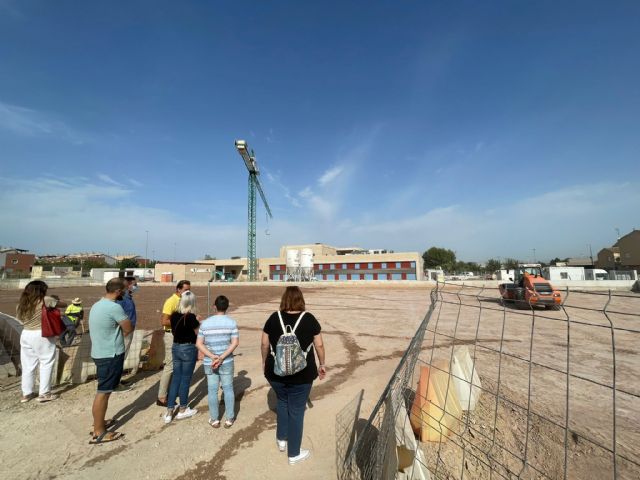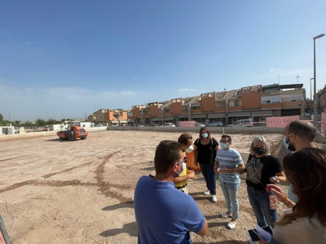 La concejala de Pedanías y Barrios, Recursos Humanos y Desarrollo Urbano, Ainhoa Sánchez, ha visitado esta mañana la calle Poeta Alfonso Illán de Algezares donde se están ejecutando las obras de construcción de un equipamiento deportivo al aire libre.