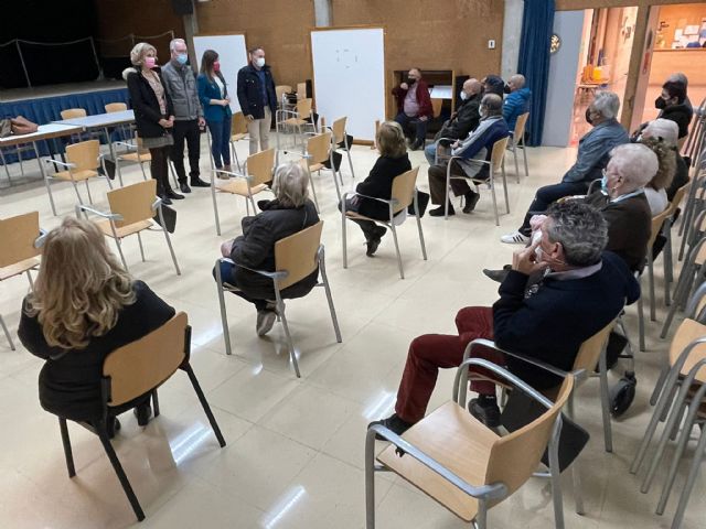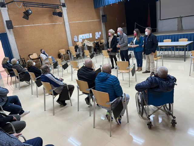 La portavoz del Grupo Municipal Popular, Rebeca Pérez; los concejales Antonio Navarro y Mercedes Bernabé y el presidente de la Junta Municipal de Barriomar, Juan José García, han mantenido un encuentro con los vecinos de esta pedanía afectados por las obras que se van a desarrollar en la zona para la llegada del AVE a Murcia.