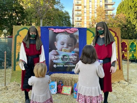El Campamento Real de Murcia, instalado en el Jardín del Malecón, ha abierto ya el espacio habilitado para que los menores que visiten el recinto puedan entregar juguetes que ya no utilizan y/o quieren donar para que otros niños y niñas disfruten de ellos. Una iniciativa promovida por el séquito de Sus Majestades los Reyes Magos de Oriente a través de la campaña "Un Juguete, una sonrisa" que cuenta con la colaboración de Safety Global, encargada de la producción, montaje y seguridad sanitaria del recinto real, y Cáritas.