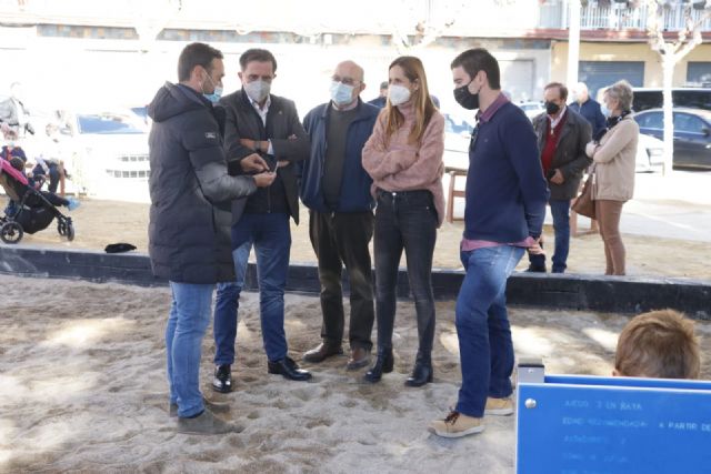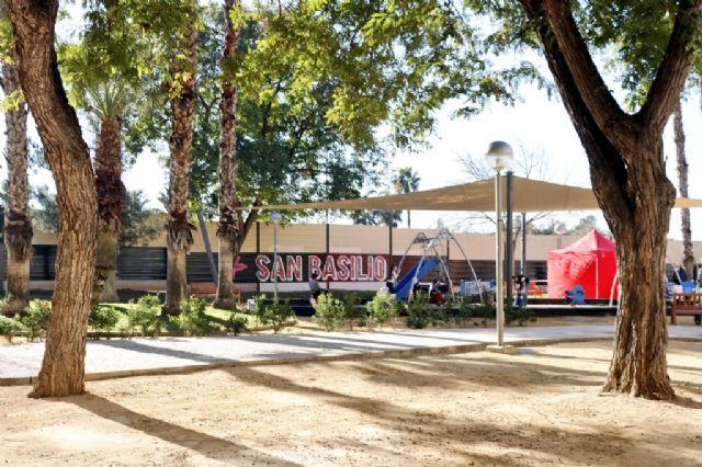 El alcalde de Murcia, José Antonio Serrano, ha visitado esta mañana el market navideño que se ha celebrado en el jardín del carril de Las Palmeras, en San Basilio. Serrano ha estado acompañado por la concejala de Pedanías y Barrios, Recursos Humanos y Desarrollo Urbano, Ainhoa Sánchez, y por la de Sanidad y Modernización de la Administración, Esther Nevado, y han aprovechado para comprobar in situ la mejora integral que se ha realizado en esta área verde, en la que se han remodelado más de 500 metros cuadrados creando islas de biodiversidad, agrupando los juegos infantiles, instalando una pérgola para ofrecer sombra y mejorando la accesibilidad a la pista de fútbol sala.