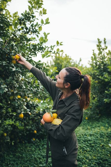 Cristina Navarro recogiendo fruta en la Huerta de Murcia (Enero 2022).