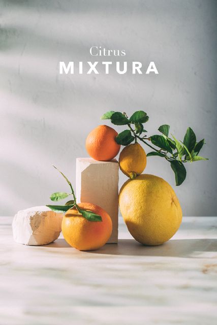 En esta serie fotográfica vemos composiciones escultóricas donde el equilibrio y la geometría juegan un papel muy importante. Las formas esféricas de los cítricos contrastan con las rigidez de las peanas de escayola, estableciéndose así un diálogo entre lo orgánico y lo funcional, entre lo fluido y lo estático.