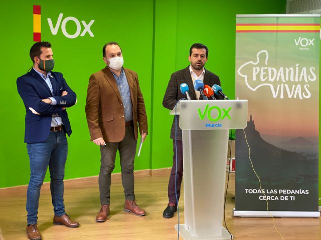 "Con Pedanías Vivas este partido quiere diferenciarse de los otros partidos y de la gestión que actualmente están llevando a cabo en el Ayuntamiento los socialistas, comunistas y aquellos de Cs que no se sabe ya ideológicamente dónde están, y marcar además gran distancia con el PP de bombo y platillo, que después de estar gobernando más de 25 años en el consistorio ha dejado las pedanías totalmente desoladas", ha manifestado el vicesecretario de Organización Rubén Martínez Alpañez, quien ha estado acompañado en rueda de prensa por el edil del Grupo Municipal José Palma y el alcalde pedáneo de Guadalupe y vicecoordinador del municipio José J. Arias.