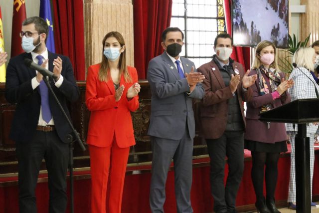 María Antonia Martínez, Rosa Peñalver y Elvira Ramos han sido reconocidas hoy, Día Internacional de la Mujer, con el galardón ‘Murcia en Igualdad', durante el acto institucional que se ha celebrado en el Ayuntamiento de Murcia y que ha estado presidido por el alcalde, José Antonio Serrano. Este galardón se otorga para reconocer a aquellas personas o entidades que han destacado por la lucha por la igualdad entre géneros y/o a mujeres que han destacado, alcanzando un alto nivel, por su trabajo o actividad en ámbitos donde las mujeres están poco representadas o, como en el caso de este año, que además han sido pioneras en su actividad profesional.