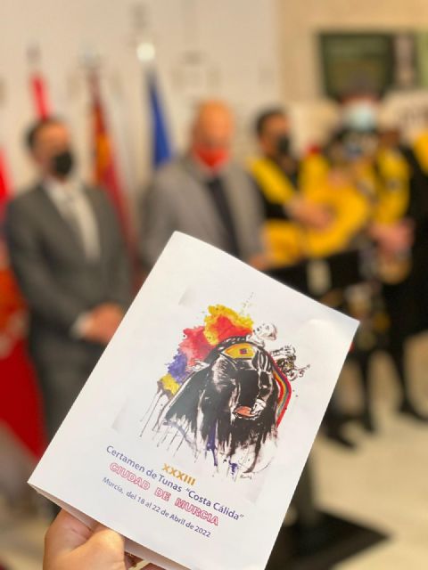 Murcia acogerá durante la próxima semana la XXXIII edición del Certamen Internacional de Tunas ‘Costa Cálida'. El evento ha sido presentado este martes en la Sala de Corregidores del Ayuntamiento de Murcia por el Alcalde José Antonio Serrano y por el concejal de Cultura, Turismo y Deportes, Pedro García Rex. Durante el acto también se ha desvelado el cartel del certamen obra de Marcelino Menéndez, pintor mexicano afincado en Murcia, fallecido recientemente.