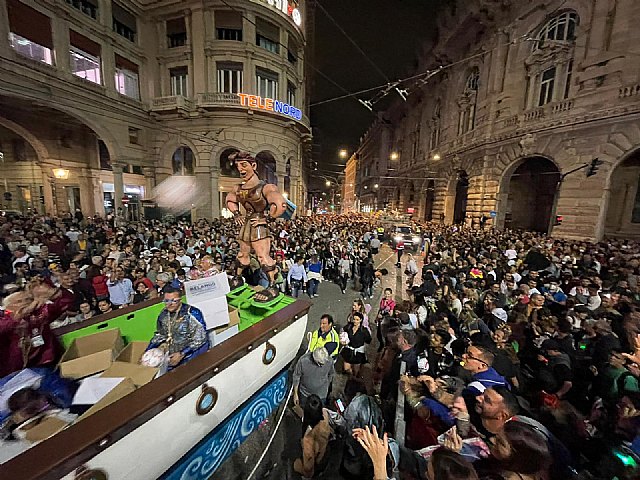 Para finalizar la jornada, se ha procedido a la quema del catafalco de la sardina con motivos alegóricos de ambas ciudades, como la Catedral de Murcia y el Palacio Ducal de Génova", y al lanzamiento de un castillo de fuegos artificiales de cerca de 20 minutos de duración.