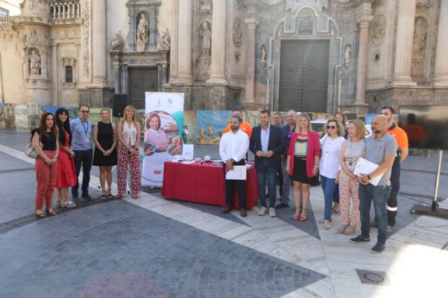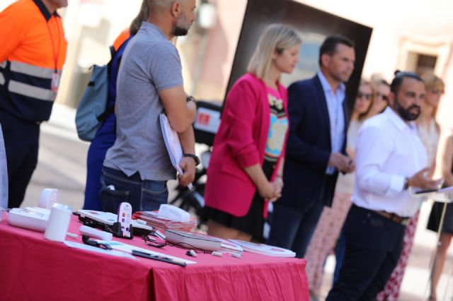 Este miércoles, la concejala de Servicios Sociales, Paqui Pérez, acompañada por el delegado territorial de Tunstall Televida, Frank Tavira, y otros representantes de empresa, ha presentado las principales novedades de la teleasistencia domiciliaria en la plaza del Cardenal Belluga.