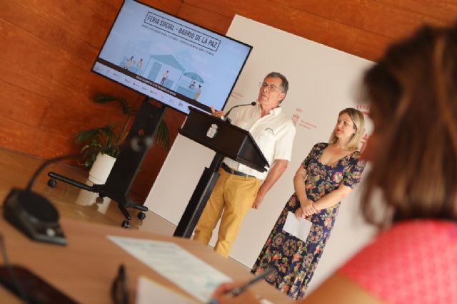 ‘Juntos hacemos de La Paz un barrio de Murcia'. Bajo esta consigna, la concejalía de Mayores, Vivienda y Servicios Sociales, que dirige la edil Paqui Pérez, ha presentado este jueves en rueda de prensa  el evento ‘Feria Social en La Paz', con la finalidad de dar a conocer a los vecinos del barrio el proyecto municipal de intervención comunitaria ‘Conexión Vital La Paz'.