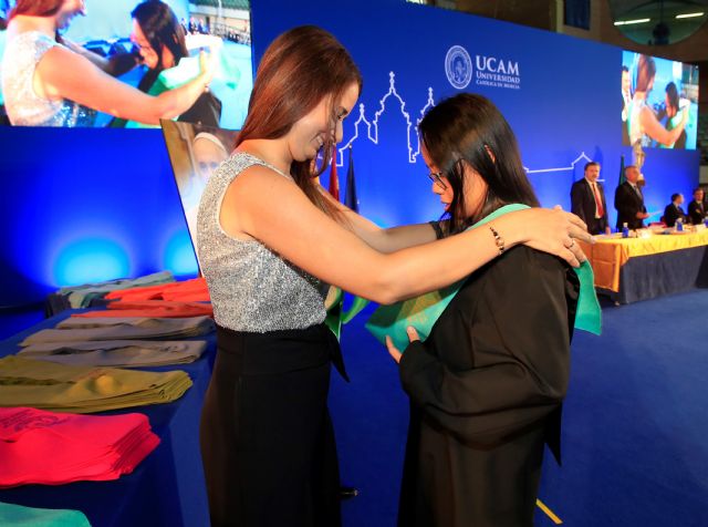 El Palacio de los Deportes de Murcia ha acogido esta tarde el acto de imposición de becas y entrega de diplomas a la IX promoción del Instituto Superior de Formación Profesional San Antonio. Asimismo se han entregado los premios a los mejores expedientes de cada uno de sus títulos.
