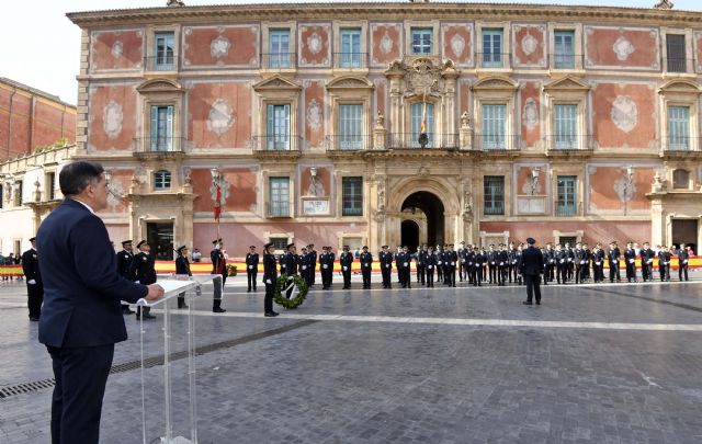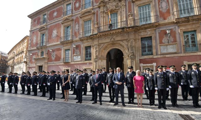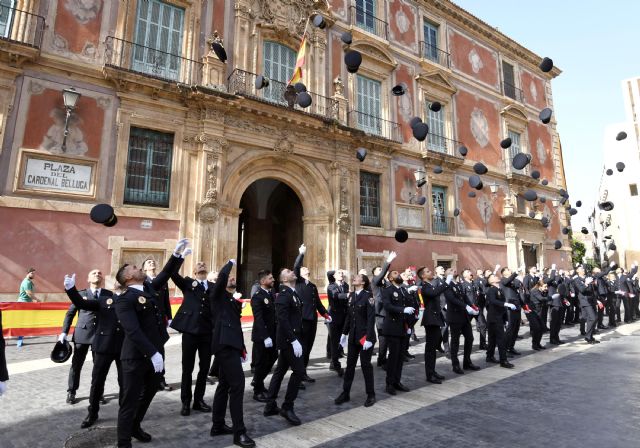 La plaza del Cardenal Belluga ha acogido esta mañana el acto oficial de toma de posesión como funcionarios de carrera de 60 nuevos agentes de Policía Local de Murcia. Los nuevos policías pasarán a engrosar la plantilla del cuerpo tras completar el periodo de formación y prácticas.