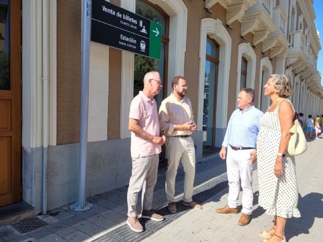 Los concejales del Grupo Municipal Popular Antonio Navarro, Mercedes Bernabé y José Guillén, junto al presidente de la Junta Municipal de Barriomar, Juan José Guillamón, han acudido hasta la estación de El Carmen para reivindicar la elaboración de un plan de movilidad que garantice la accesibilidad peatonal y rodada de los vecinos de Barriomar durante las obras del AVE.