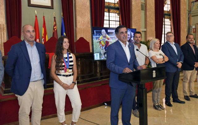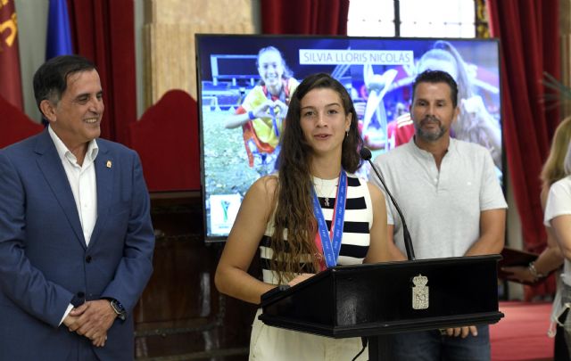 Tras recibir el calor de sus vecinos el pasado viernes en la pedanía de El Palmar, Silvia Lloris ha sido recibida este lunes en el Ayuntamiento de Murcia por el Alcalde José Antonio Serrano, por el vicealcalde, Mario Gómez y por miembros de la corporación municipal en un acto en el que se ha procedido a la entrega de una placa conmemorativa cuyo texto de reconocimiento ha sido leído por la propia homenajeada.