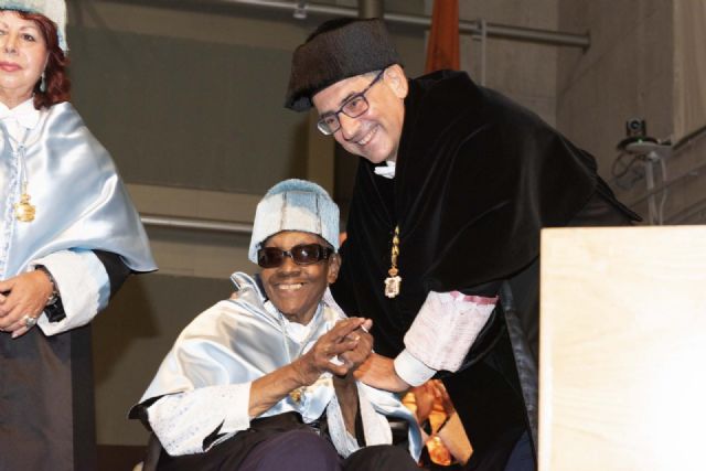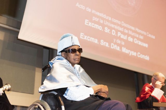La Universidad de Murcia ha celebrado este viernes uno de sus actos más solemnes con la investidura como doctores honoris causa del economista Paul de Grauwe y la escritora Maryse Condé; dos ejemplos de excelencia profesional y académica en sus respectivos campos de trabajo. El rector, José Luján, ha agradecido a ambos su "generosidad y disposición por aceptar la propuesta de la Universidad de Murcia" y les ha dado la bienvenida a la comunidad universitaria de la UMU.