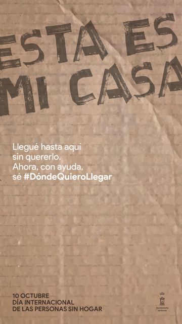 El Ayuntamiento de Murcia, a instancias de la Concejalía de Mayores, Vivienda y Servicios Sociales, conmemora este lunes, 10 de octubre, el Día Mundial de las Personas Sin Hogar haciendo un llamamiento a la sociedad sobre la realidad del sinhogarismo en el municipio y la necesidad de generar políticas públicas integrales que ayuden a las personas que viven en la calle a restaurar su proyecto de vida.